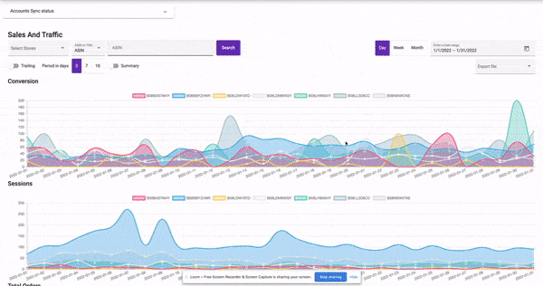 Amazon Business Reports allows you to view your conversion rate in one time period, we help you view it daily, weekly or monthly to understand changes to your listing and react to them